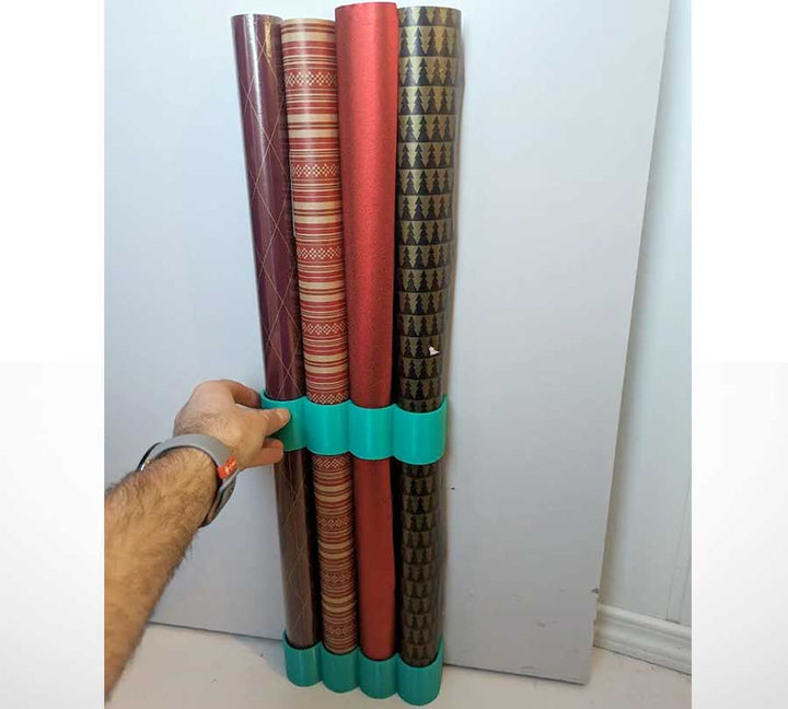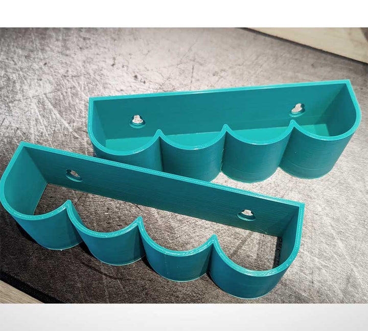 Skab orden på kontoret med vores 3D-printet holder til gavepapirs ruller. Holderen hænges op med skruer eller dobbeltklæbende tape - kan både hænge på vandrette og lodrette flader. Hvis du ønsker at gemme papiret helt af vejen, kan de f.eks. også hænge på indersiden af et skab.